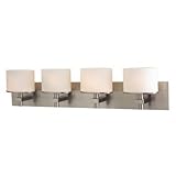 Ombra bath bar features white opal glass diffusers. Finish available in chrome and polished satin nickel. Available in a vanity wall sconce and 2, 3 and 4 light bath bar version. 60 watt, 120 volt, JCD Type G9 base halogen lamps not included. General light distribution. UL listed. Two light option: 17W x 7.63H x 5.5 inch depth. Three light option: 25.5W x 7.63H x 5.5 inch depth. Four light option: 34W x 7.63H x 5.5 inch depth.
