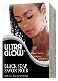 Ultra Glow Black Soap. Ultra Glow Black Soap is a natural exfoliating soap that restores moisture to the skin. Great for all skin types, it helps to clear the skin of bumps, spots and acne. 3.50 oz.